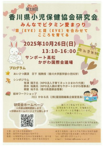 香川県小児保健協会より、「第18回 香川県小児保健協会研究会」のお知らせです。