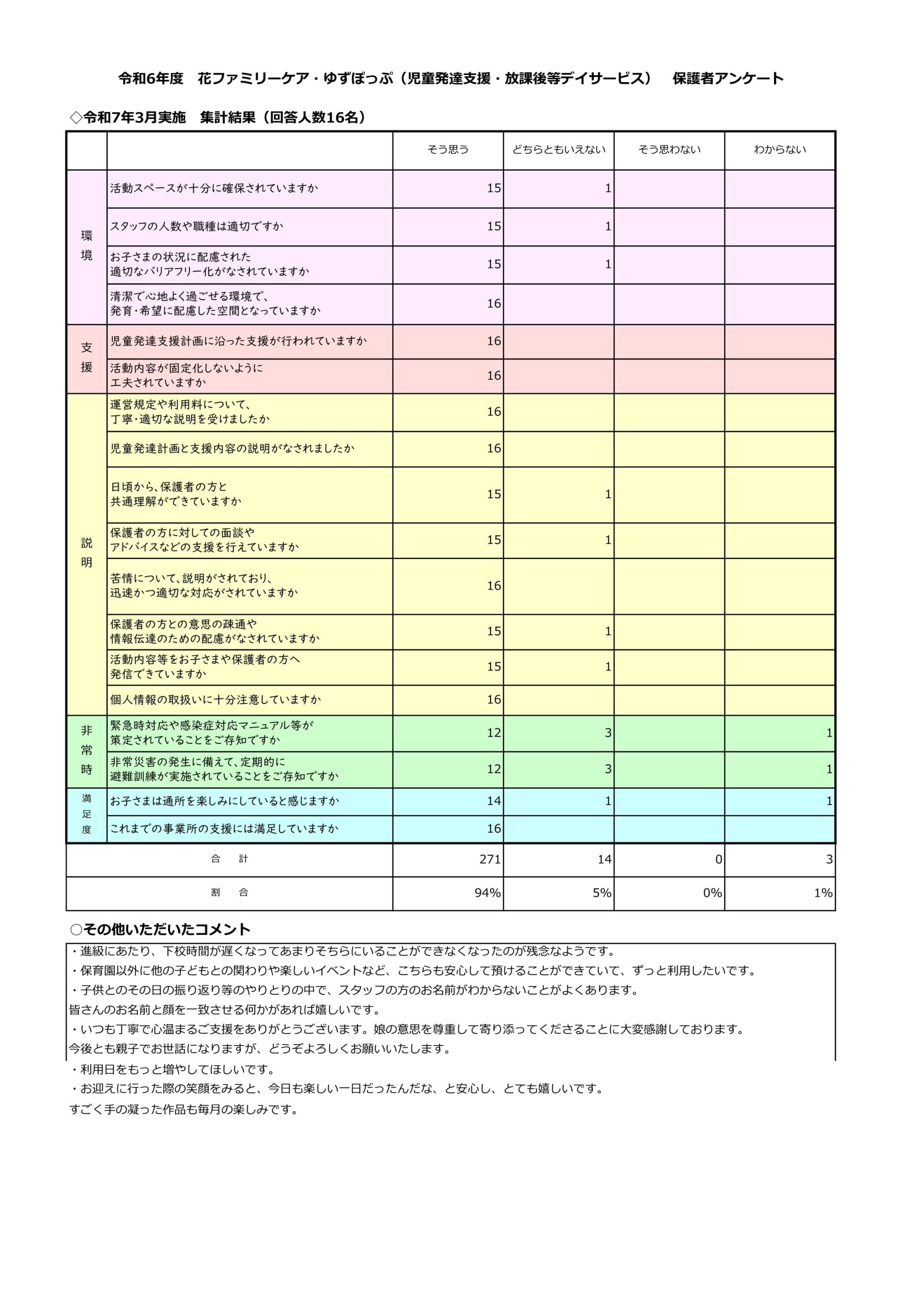 令和6年度 花ファミリーケア利用者アンケート(児童発達支援・放課後等デイサービス)