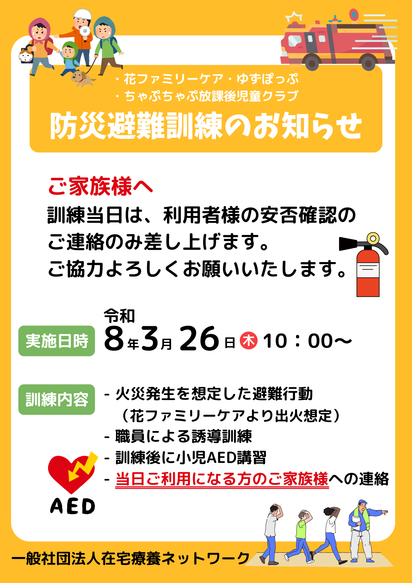 令和8年3月26日(木)に防災避難訓練を実施します。🔥