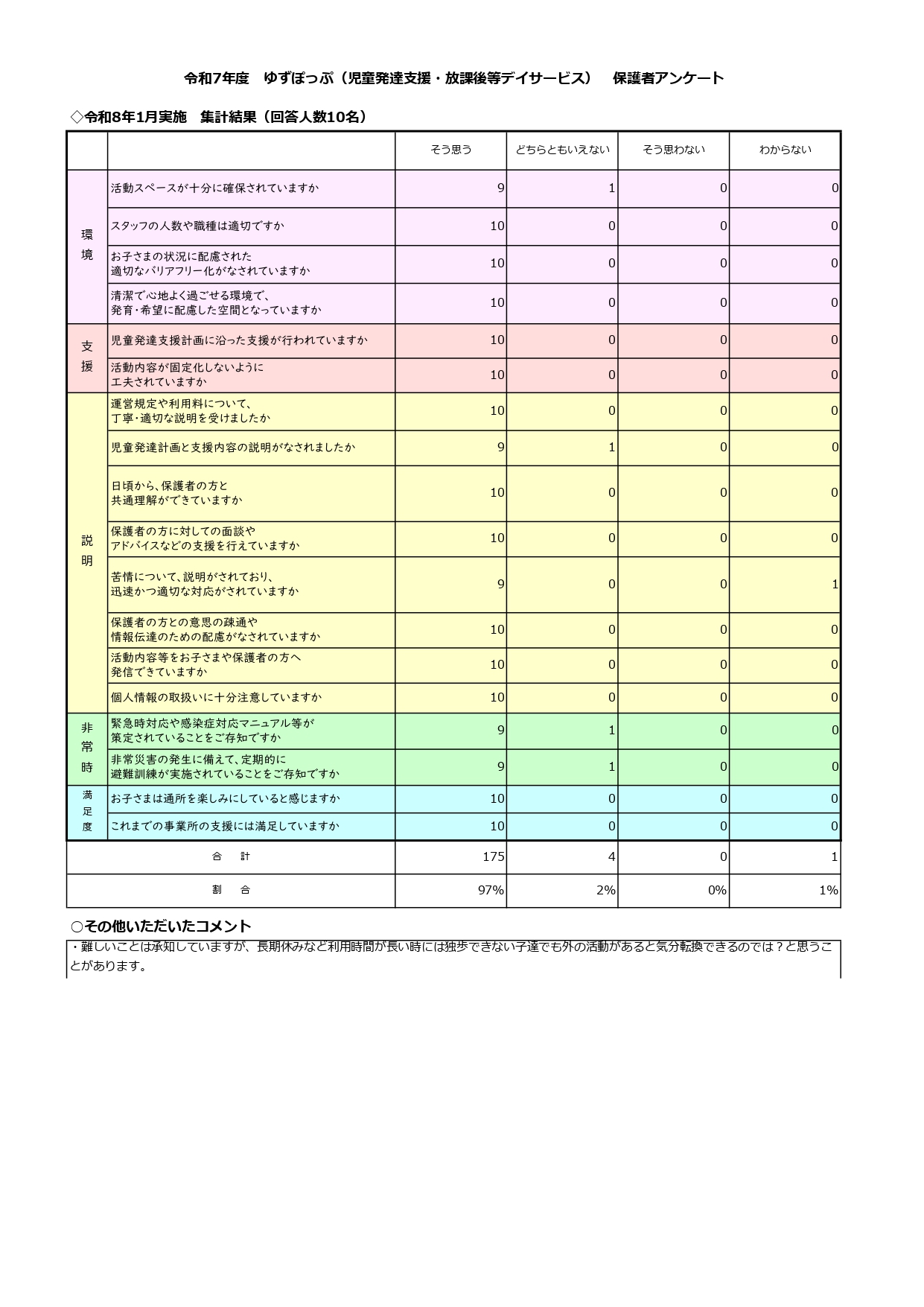 令和7年度 ゆずぽっぷ利用者アンケート(児童発達支援・放課後等デイサービス)