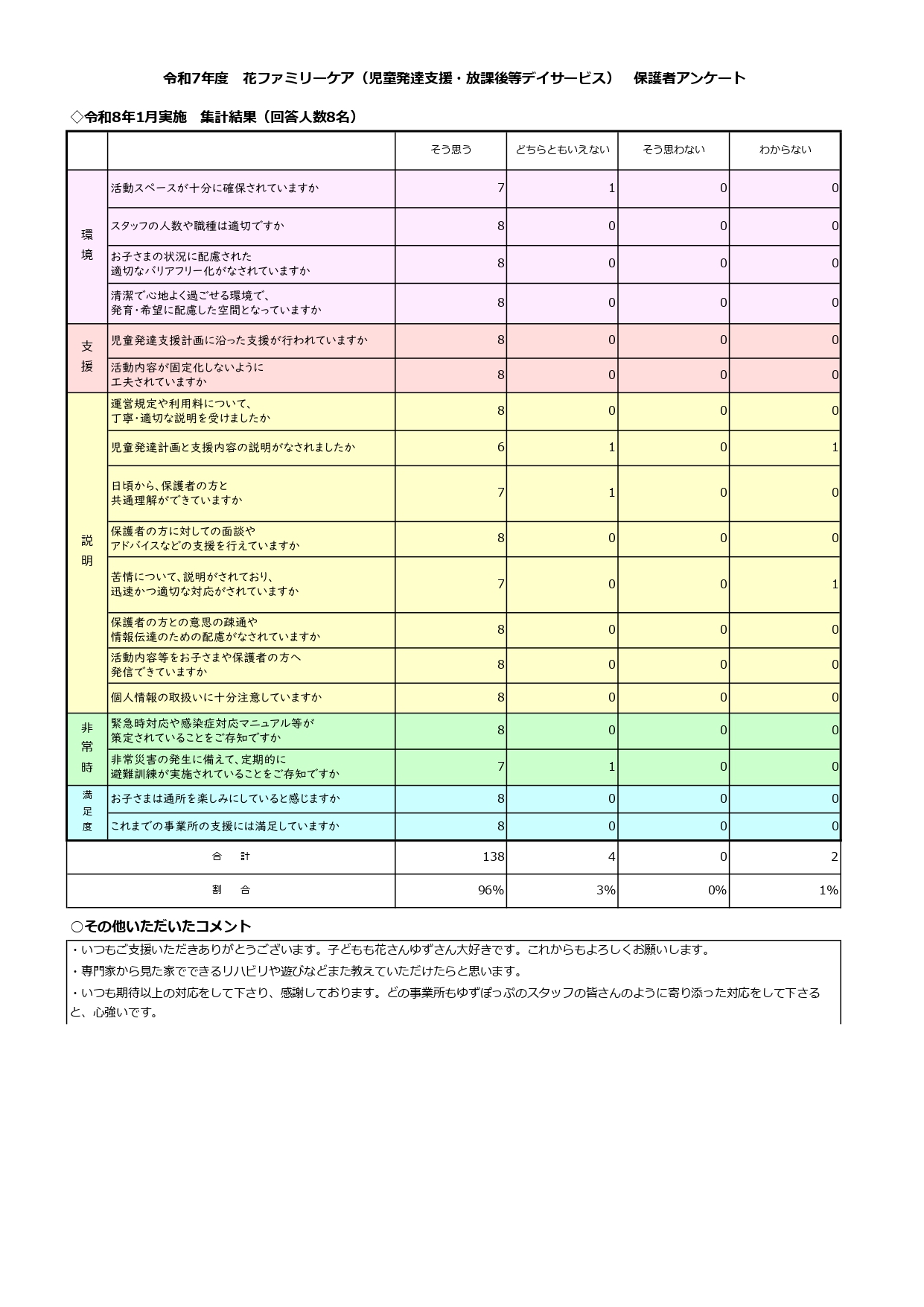 令和7年度 花ファミリーケア利用者アンケート(児童発達支援・放課後等デイサービス)