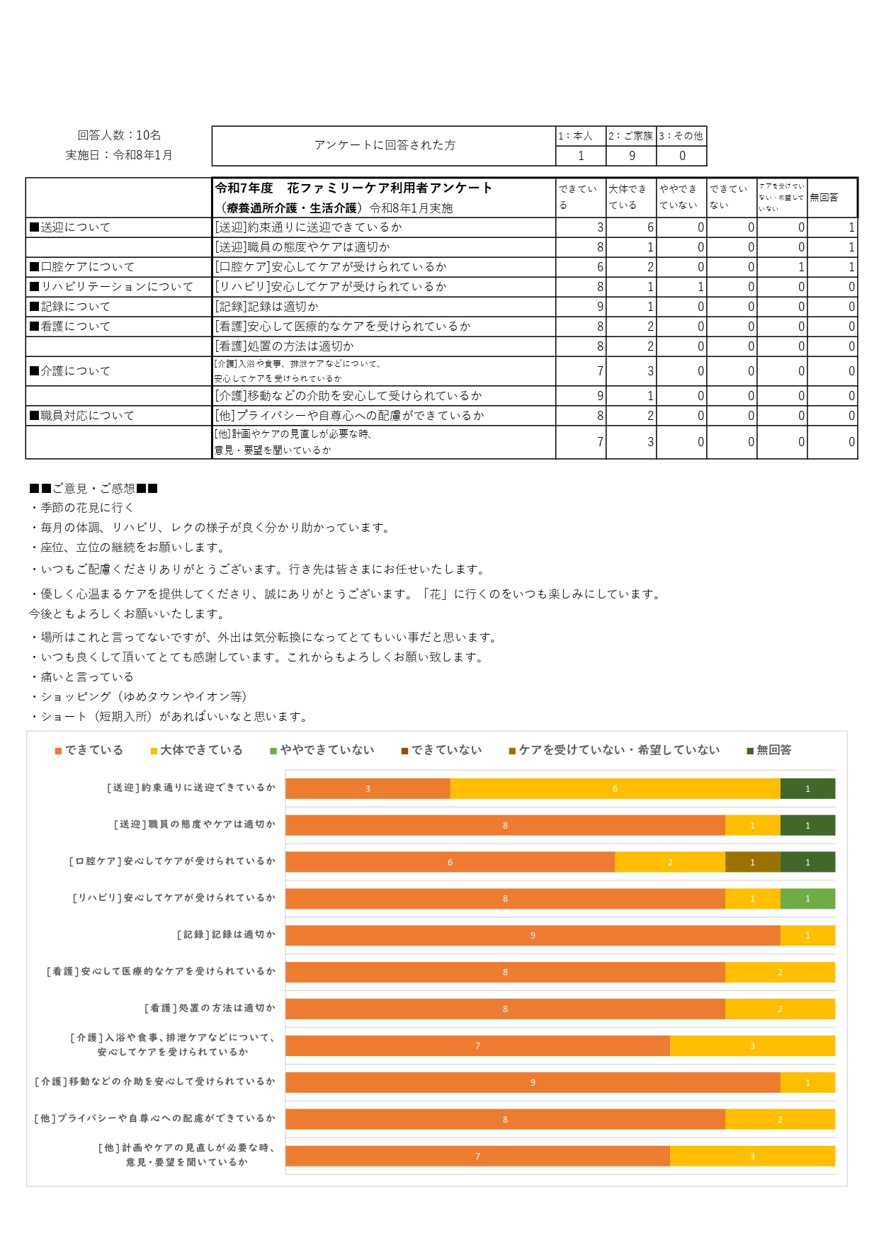 令和7年度 花ファミリーケア利用者アンケート(療養通所介護・生活介護)